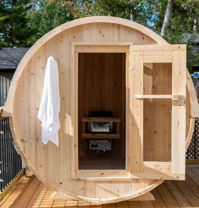 Ce kit de sauna Baril inclus des berceaux en cèdre massif, des bandes en aluminium et une quincaillerie en acier inoxydable, et est livré prêt à être monté.