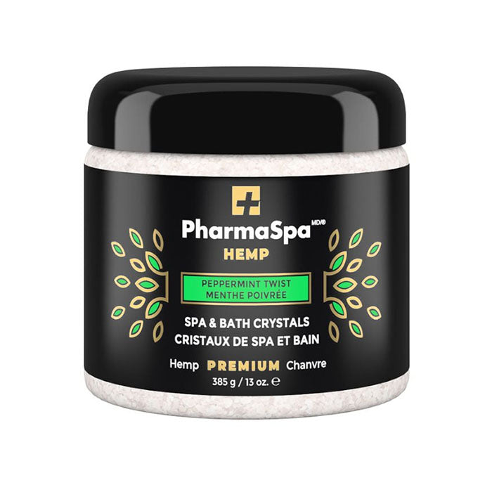 Apaisez votre esprit et votre corps avec une expérience spa de luxe en utilisant nos cristaux de spa et bain chanvre MENTHE POIVRÉE avec l’aloe Vera, l’huile de graines de chanvre et bien plus encore.